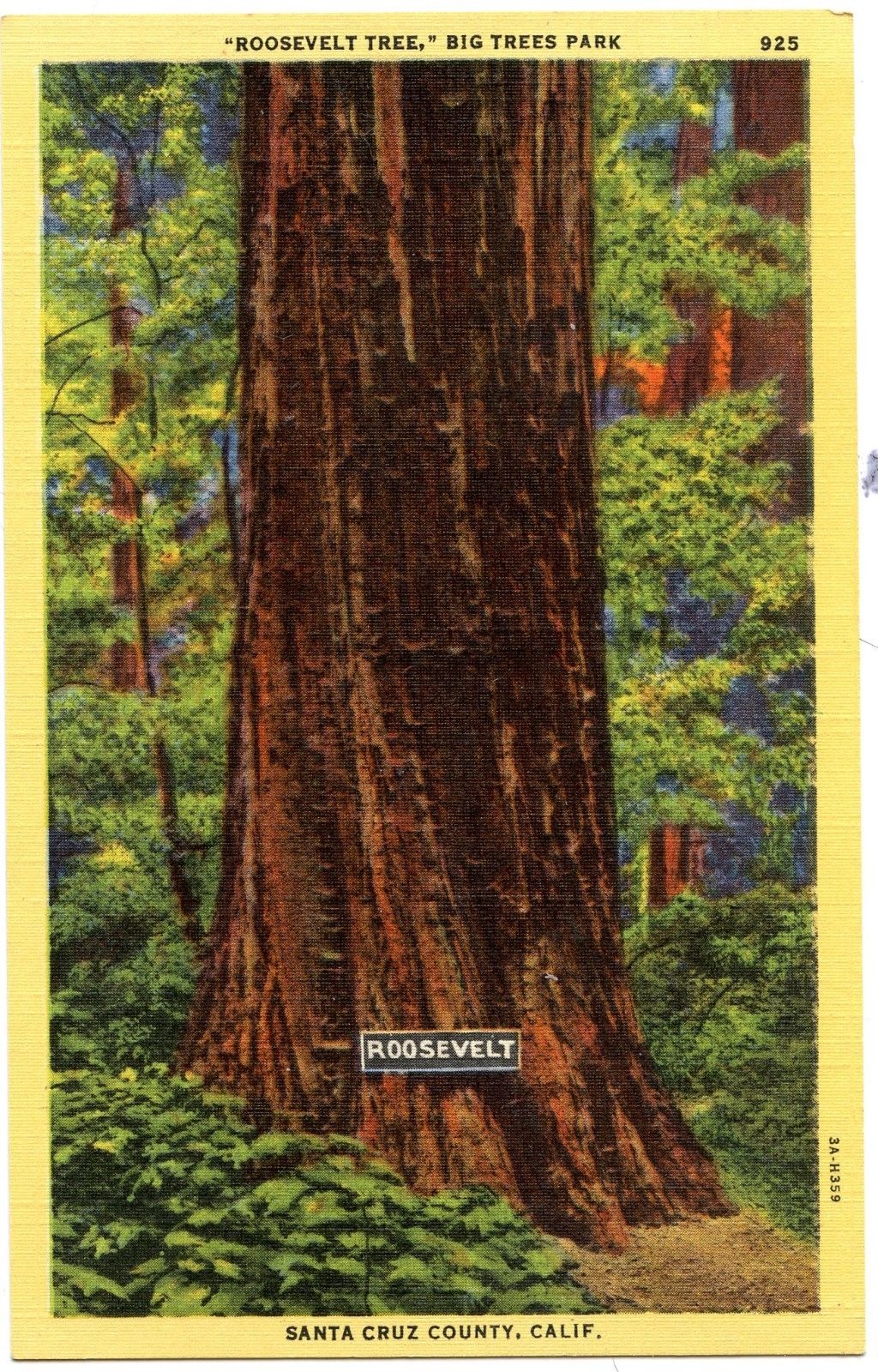 Title (ebay affiliate link): B3822 "Roosevelt" Big Trees Park Santa Cruz Co 1933 Teich Linen PC #3A-H359