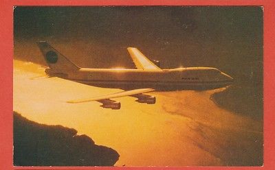 Pan Am's 747/ jet / sunset skies/ chrome postcard