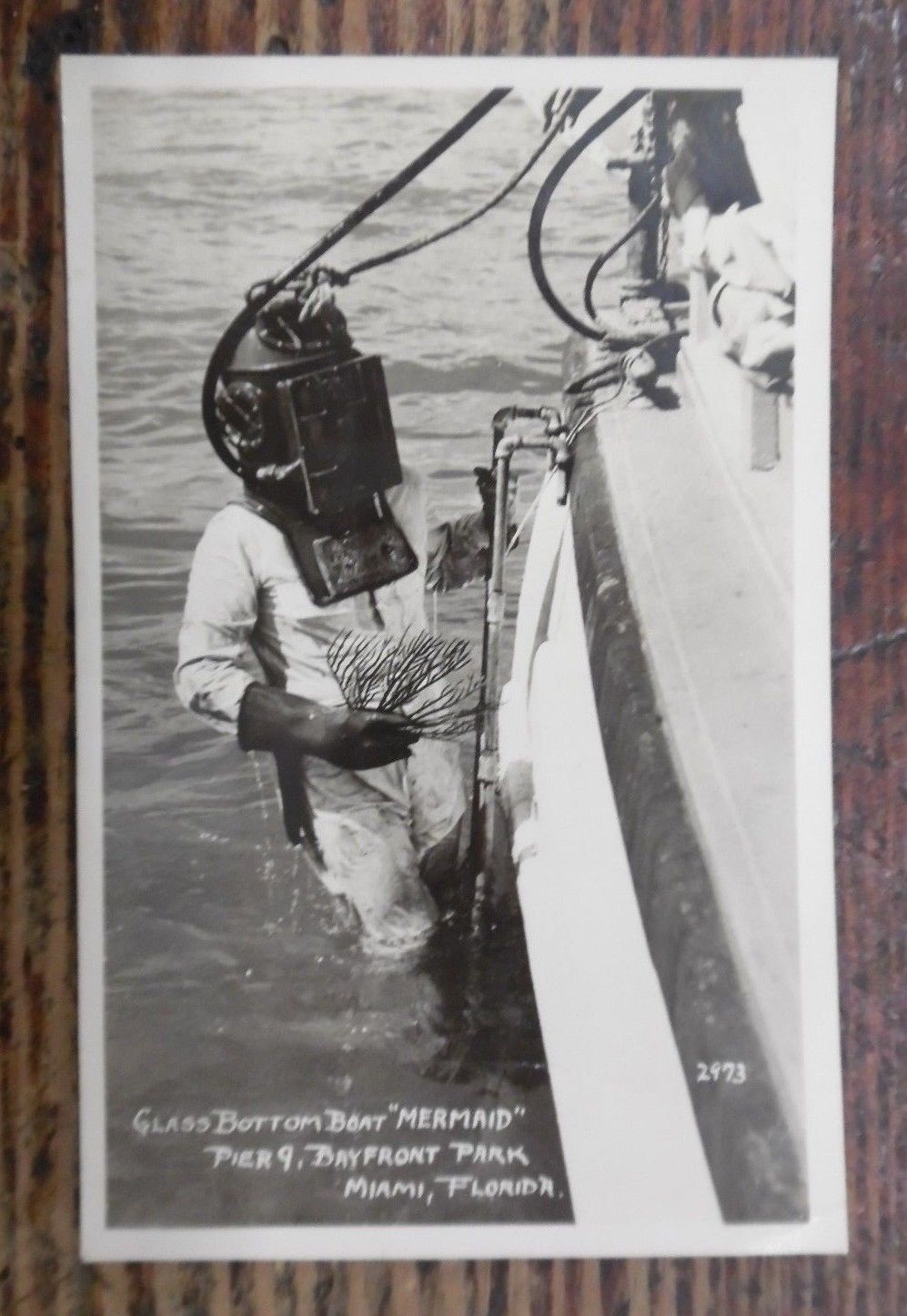 Title (ebay affiliate link): 1940s Glass Bottom Boat MERMAID Diver Bayfront Park Miami FLA RPPC Postcard