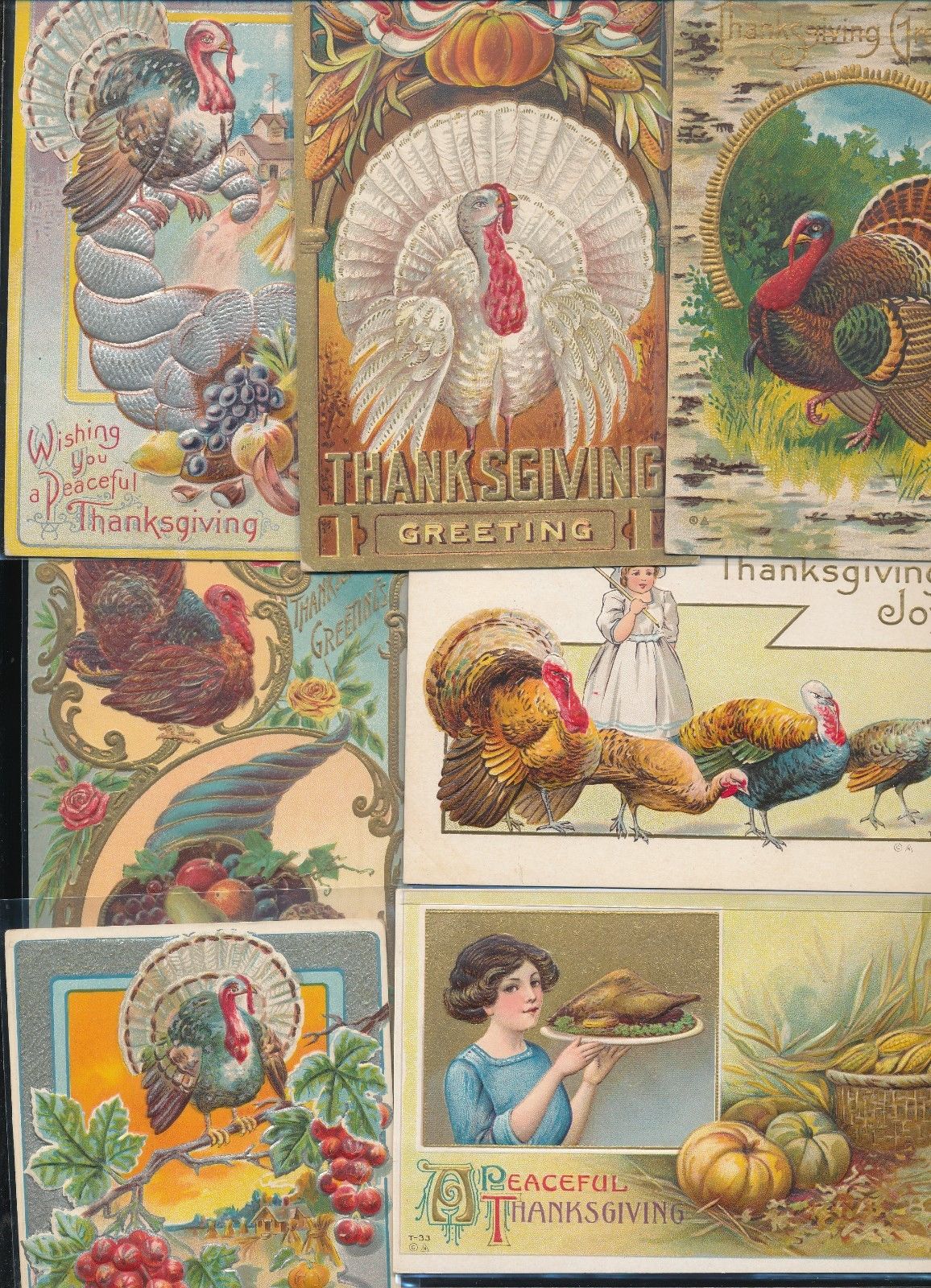 Lot of 7 ANTIQUE EARLY 1900s HOLIDAY Postcards * THANKSGIVING * -a445