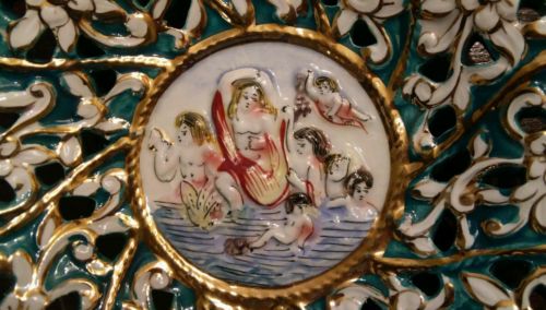 Title (ebay affiliate link): VINTAGE CAPODIMONTE PORCELAIN ITALY GOLD GILDED PLATE SWIMMING SEA SIRENS 7"