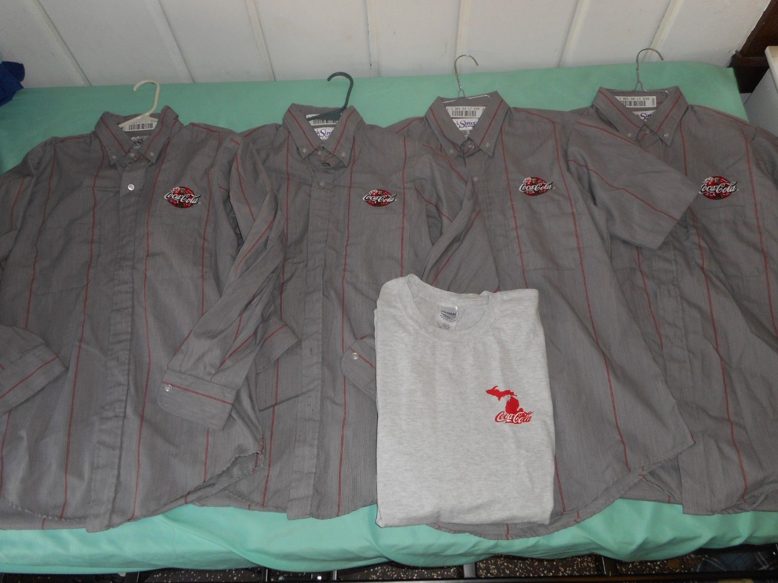 Title (ebay affiliate link): COCA-COLA UNIFORM SHIRTS SIZE LARGE BUTTON DOWN COLLAR GRAY STRIPE EMPLOYEE LOGO