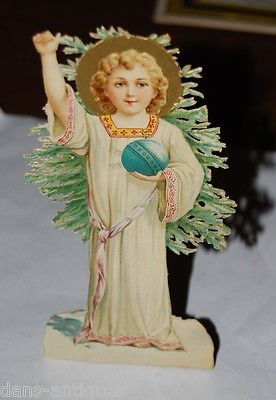 Title (ebay affiliate link): Antique Victorian Christmas Die Cut of the Christ Child with orb with Tree