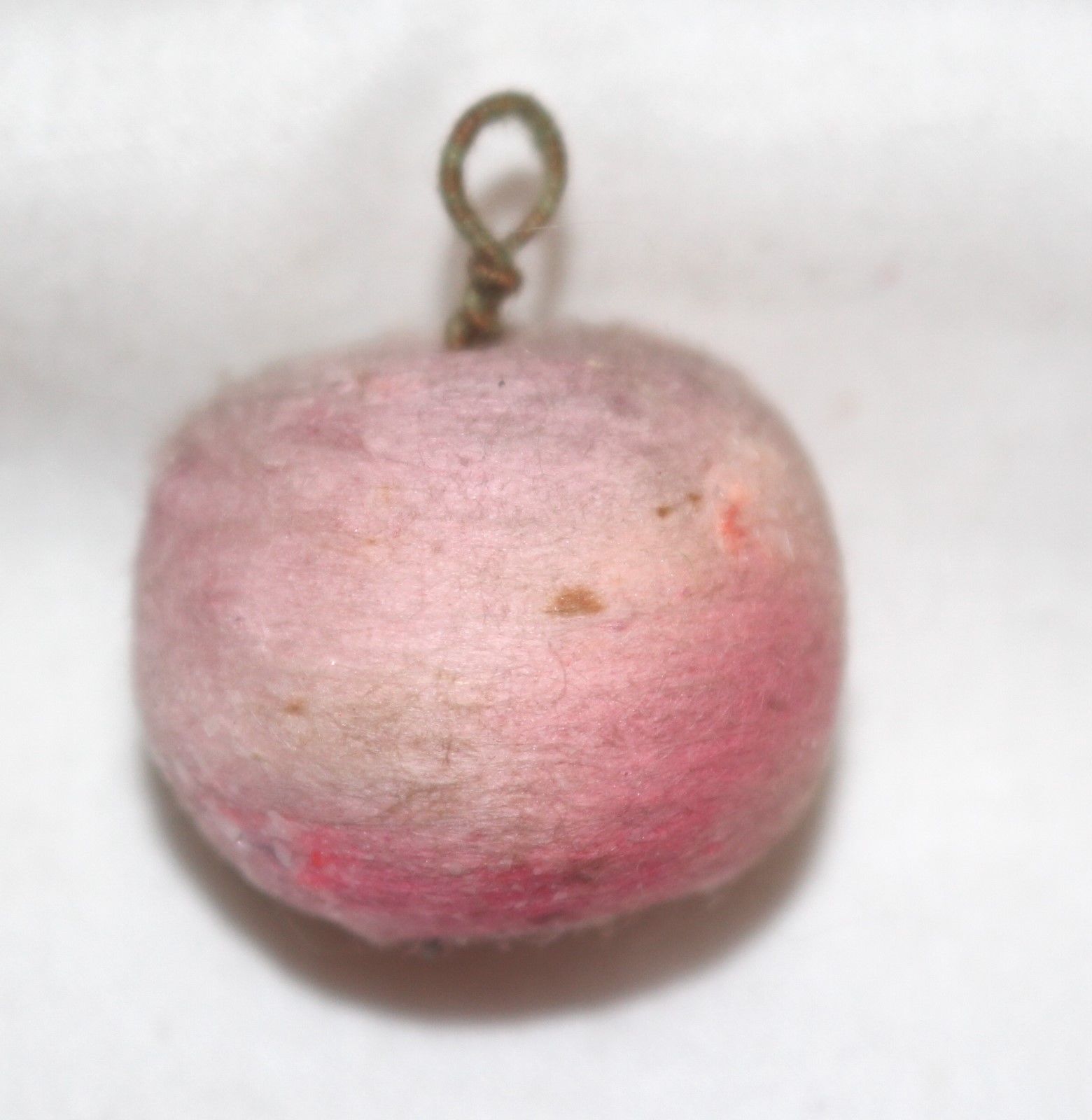 1890s Bright, Miniature Red Apple. Spun Cotton Fruit German Christmas Orn.