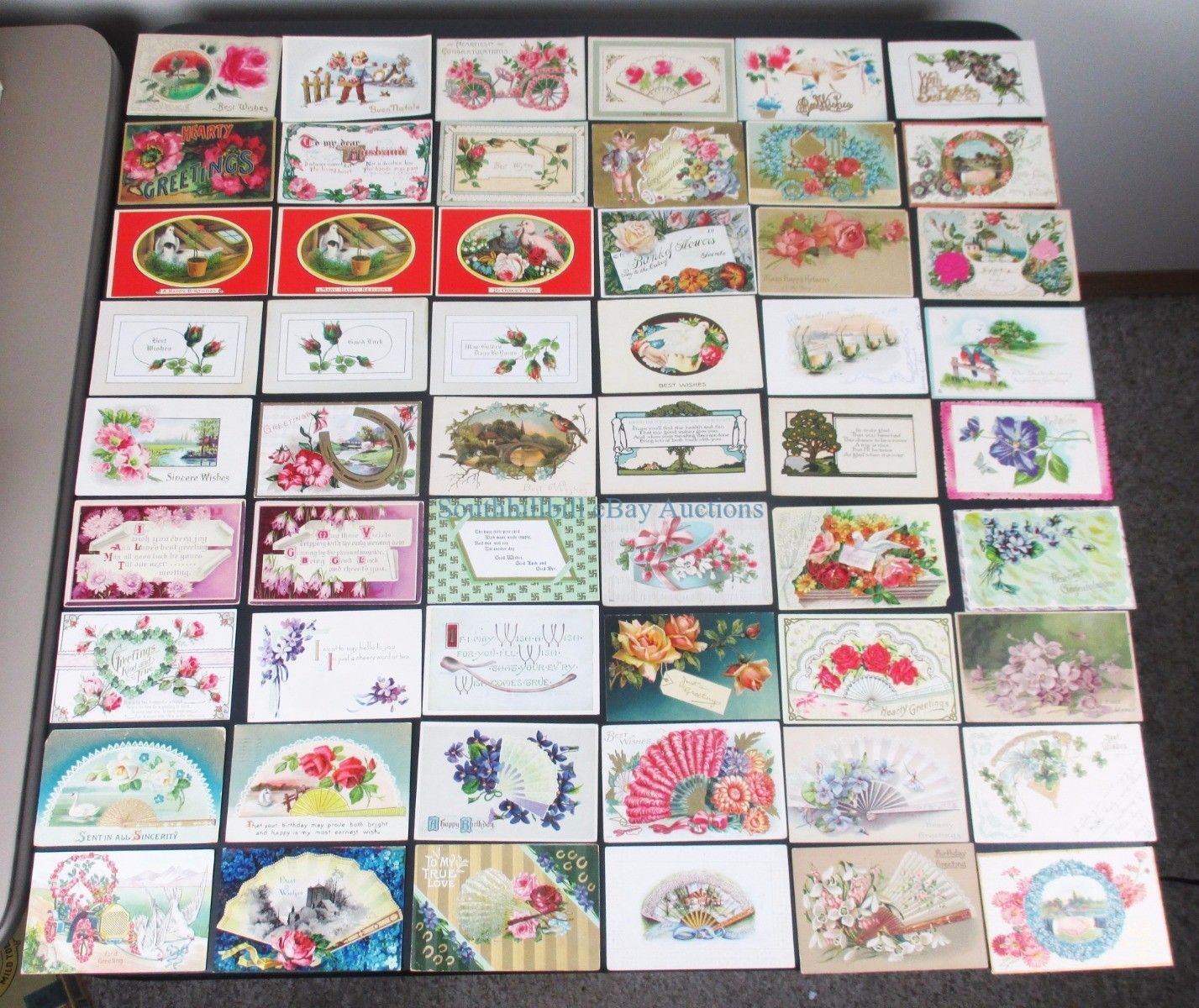 Title (ebay affiliate link): (54) VINTAGE POSTCARDS HEARTY CONGRATULATIONS BIRTHDAY BEST WISHES ART EMBOSSED+