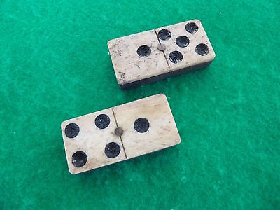 Antique Civil War Era Bone & Ebony Dominoes, X2, Great Camp Item!