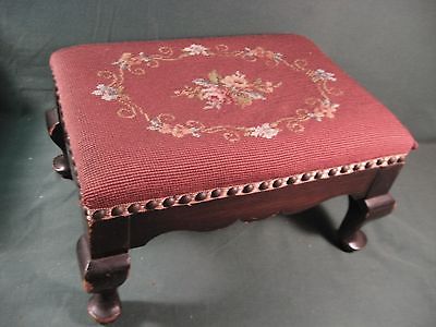 VINTAGE NEEDLEPOINT MAHOGANY FOOTSTOOL