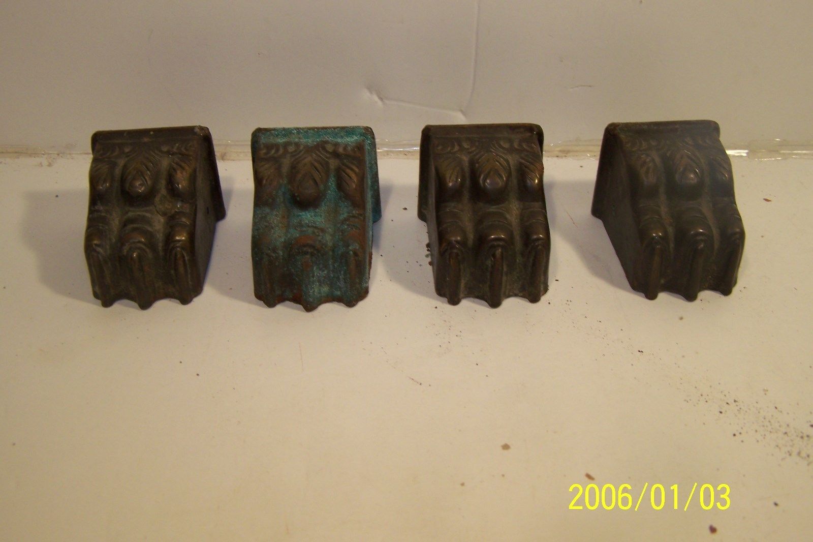 4 MATCHING ANTIQUE 3 CLAW/TOE METAL FEET CAPS