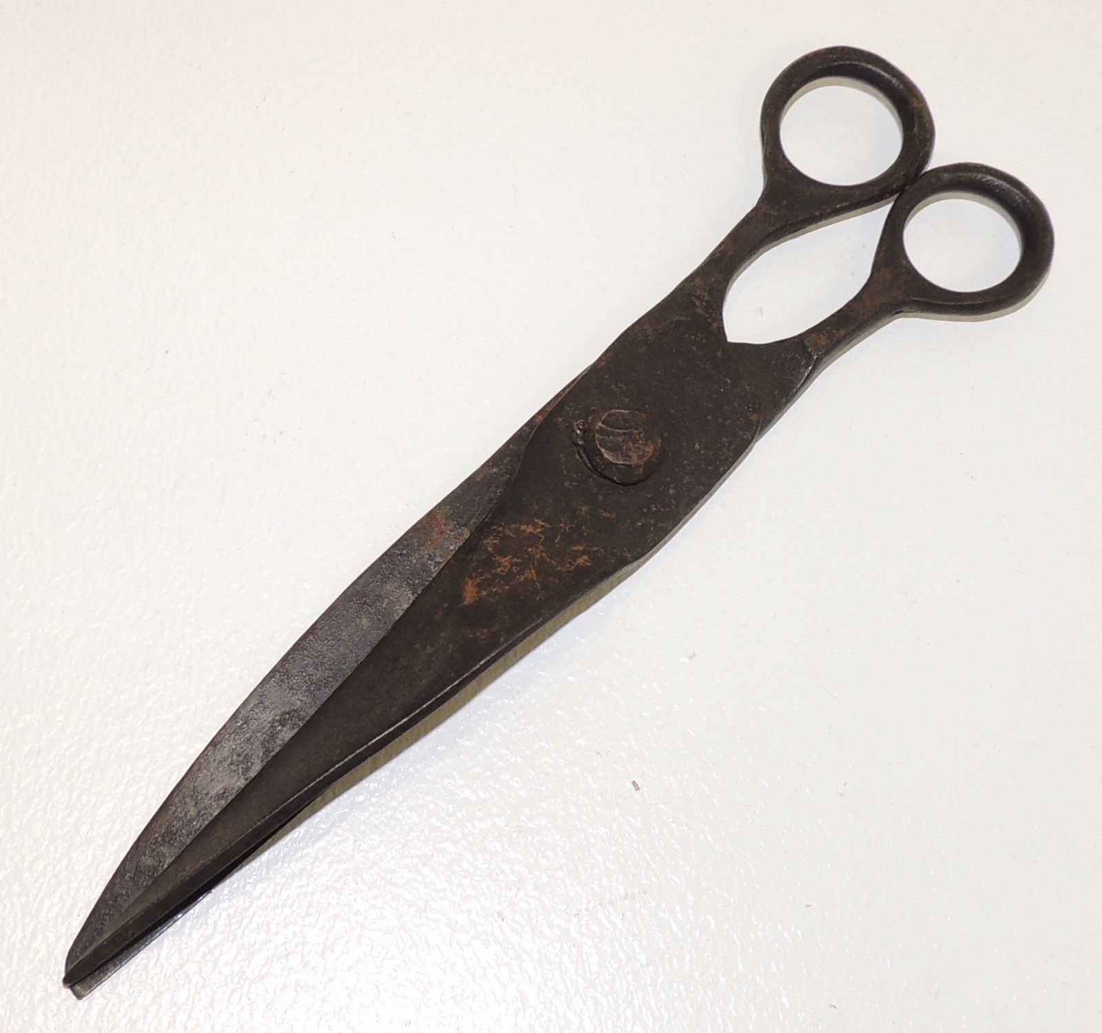 Title (ebay affiliate link): ANTIQUE VINTAGE Wrought Cast Iron Scissors Primitive Signed Handmade Early