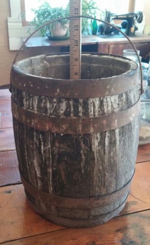 Title (ebay affiliate link): Vintage Metal Banded 7.5 x 9.5 Primitive Wood Barrel Bucket Swing Handle Antique