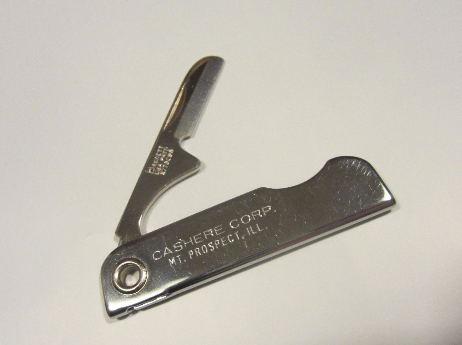 VINTAGE BASSETT USA CASHERE CORP MT PROSPECT ILL ADVERTISING KEY CHAIN KNIFE