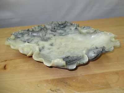 VINTAGE HAND CARVED MARBLE ALABASTER 14" BOWL CENTERPIECE WATER LILY ETCHED RARE