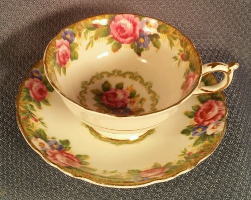VINTAGE PORCELAIN TEA CUP SAUCER SET PARAGON ENGLAND TAPESTRY ROSE