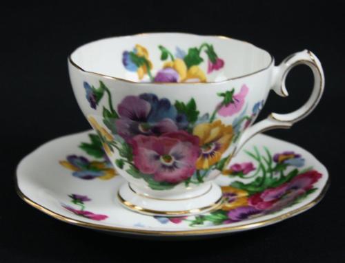 Queen Anne Tea Cup & Saucer -Spring Melody- Pansies-Made in England