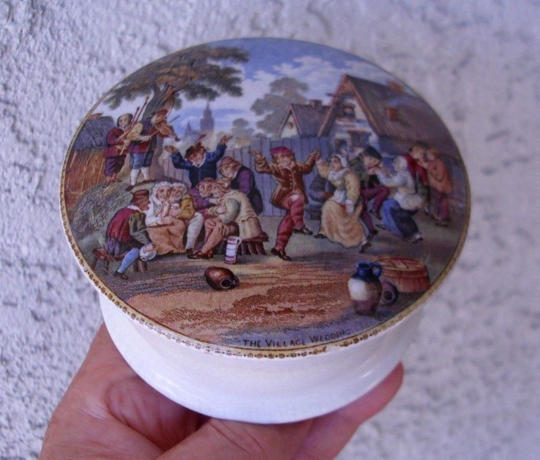 Antique,ceramic, ca 1880 multi-color PRATTWARE jar, box, pot lid