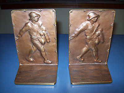Antique Bronze Farmer Sower Bookends Mission Art - Unsigned Griffoul? Very Rare!