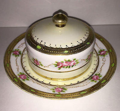 Antique NIPPON Hand Painted Covered Bowl Pink Roses with Gilded MORIAGE