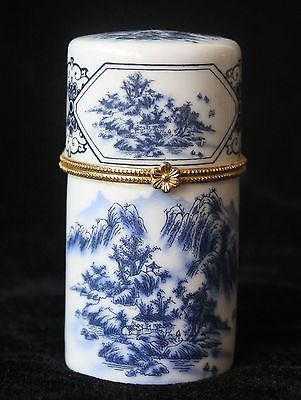 8CM Collect Chinese Blue White Porcelain Dynasty Mountain Tree Coccoloba Box