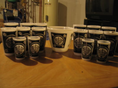 Vtg Black And White Milk Glass Ice Bucket And Glasses