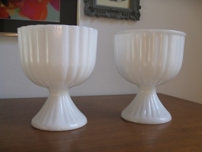 Two Vintage Milkglass Milk Glass Compote Pedestal Vases