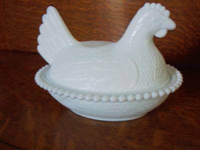 BEAUTIFUL 7 INCH WHITE MILK GLASS COVERED CHICKEN DISH