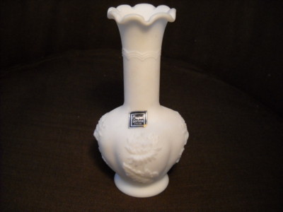 6.25" MILK GLASS VASE W/ORIGINAL DOESKIN FINISH STICKER