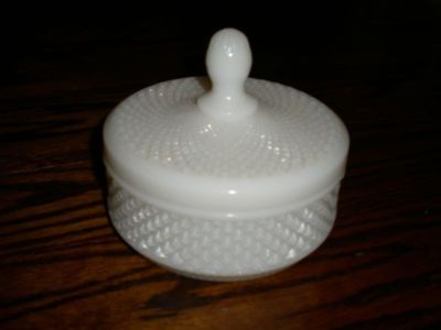 VTG OPAQUE MILK GLASS OLD DUSTING POWDER TRINKET JAR