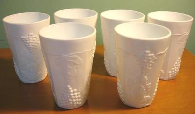 6 Vintage Indiana Harvest Grape Milk Glass Tumblers