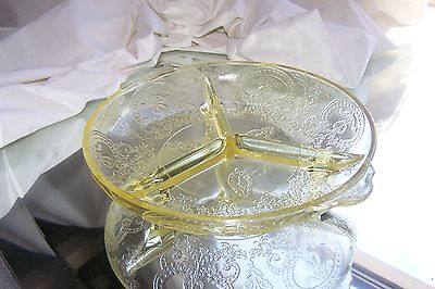 RARE Indiana "Horseshoe" Yellow Depression Glass Three Part Footed Relish Bowl