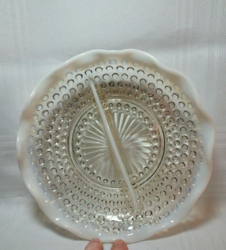 Title (ebay affiliate link): Moonstone Depression Glass Divided Hobnail White and Clear Dish