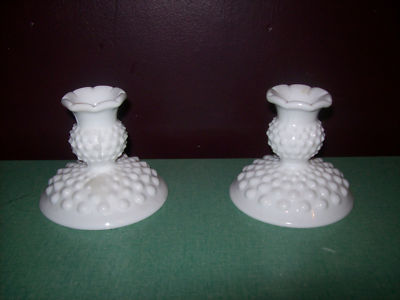 Vintage Fenton Hobnail Milkglass Candle Holders