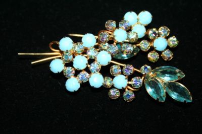 VINTAGE RHINESTONE & MILK GLASS FLOWER BROOCH JULIANA