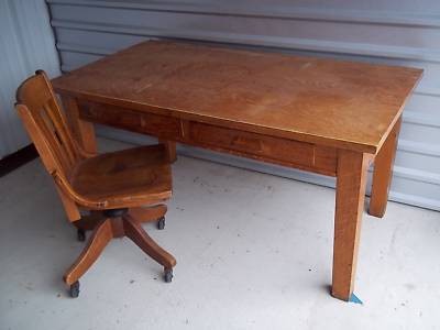 ANTIQUE LIBRARY TABLE AND CHAIR