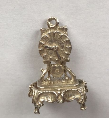Vintage Silver Antique Style Mantle Clock Charm 4.5g
