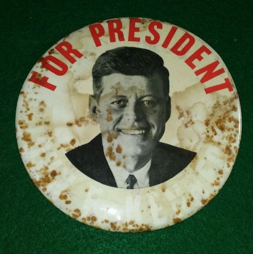 Title (ebay affiliate link): VINTAGE JOHN F. KENNEDY FOR PRESIDENT LARGE 6" CAMPAIGN BUTTON PIN 1960 JFK