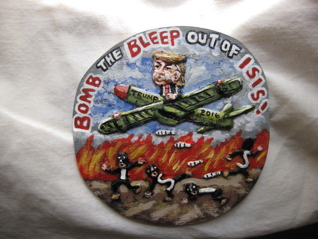 Title (ebay affiliate link): Donald Trump "Bomb ISIS" 2016 Presidential Campaign Novelty Pin