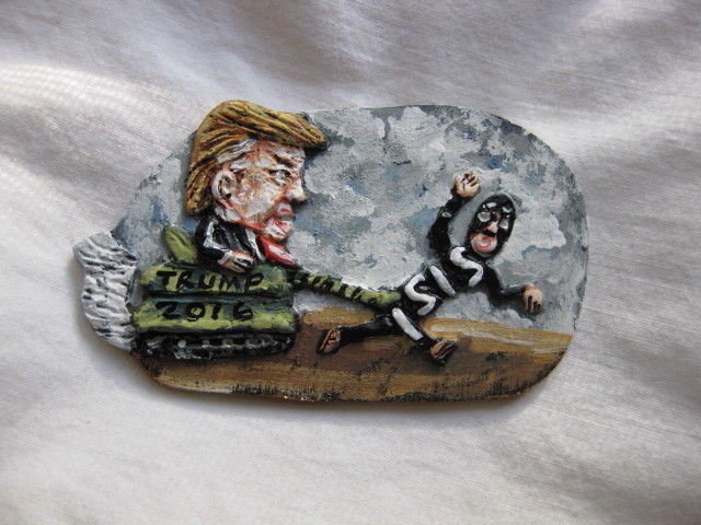 Title (ebay affiliate link): Donald Trump in Tank after ISIS 2016 Presidential Campaign Novelty pin