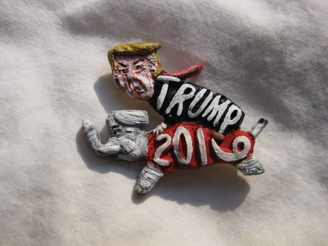 Title (ebay affiliate link): Donald Trump Riding Elephant 2016 Presidential Campaign Novelty PIn