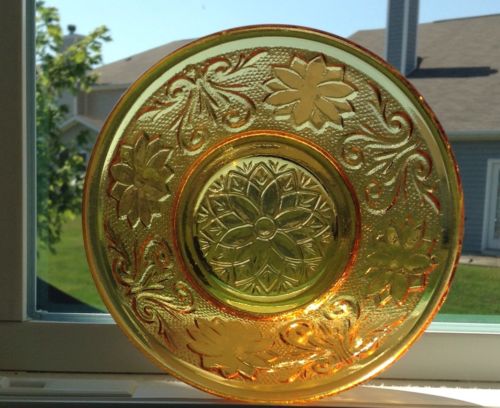 Title (ebay affiliate link): VINTAGE AMBER DAISY PATTERN BERRY BOWLS-SET OF 4 EUC