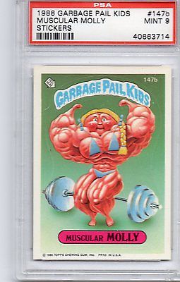 Title (ebay affiliate link): 1986 Garbage Pail Kids - Series 4 - #147b Muscular Molly - Graded PSA 9 Mint