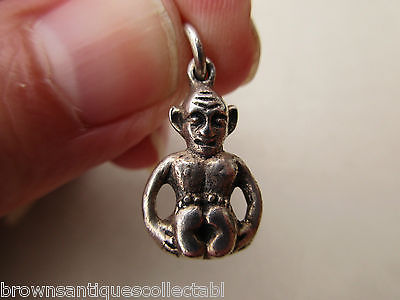 ANTIQUE VINTAGE VICTORIAN STERLING SILVER BILLIKEN PIXIE DOLL FOB CHARM PENDANT