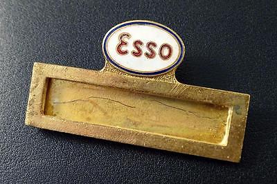 VINTAGE 1950s ESSO BRASS AND ENAMEL EMPLOYEE BADGE/NAME HOLDER- OIL, GARAGE, CAR