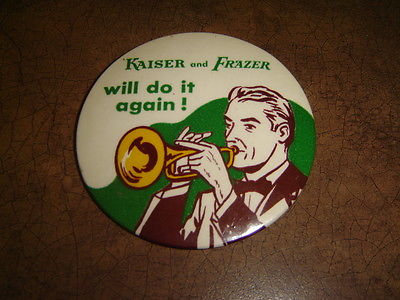 Title (ebay affiliate link): VINTAGE KAISER FRAZER ADVERTISING SALES PINBACK BUTTON "KF WILL DO IT AGAIN"