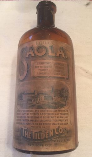Title (ebay affiliate link): Vintage Cork Top SAOLA Bottle Paper Label Disinfectant Germicide Old Drug Store
