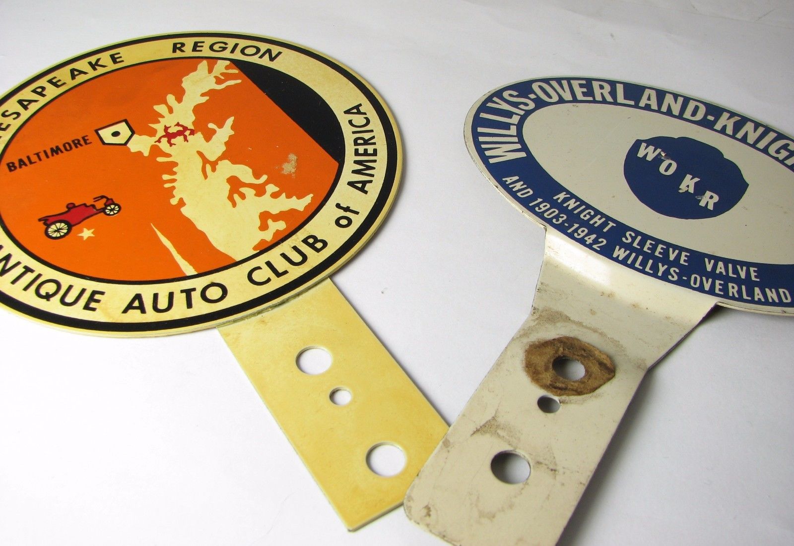 2 Vintage License Plate Toppers 1942 Willys Overland Knight Registry & AACA