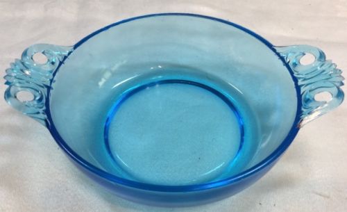 Title (ebay affiliate link): Peacock Blue Depression Glass Tabbed Candy Dish Intricate Handles