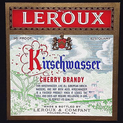 Leroux Kirschwasser Cherry Brandy Vintage Old Label Philadelphia PA USA