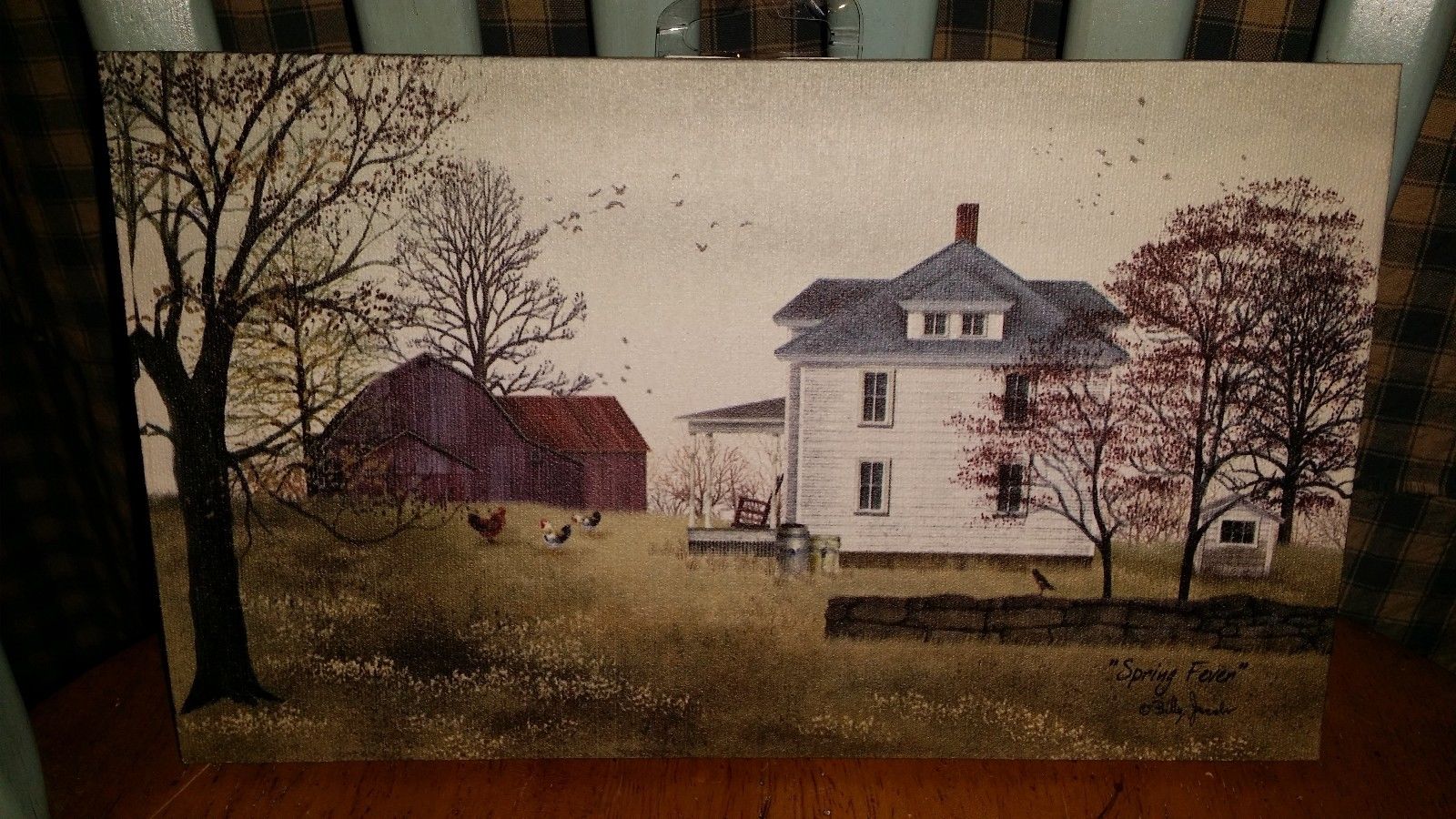 Title (ebay affiliate link): Spring Fever by Billy Jacobs, Canvas picture, 6.5"x10.75", Roosters, Farmhouse