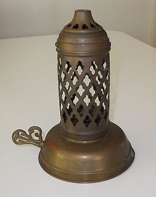 Antique Primitive Punched Copper or Brass Candle Holder Chamberstick Lantern