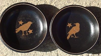 set 6" wood stacking bowls black crows birds stars primitive ~ free shipping!